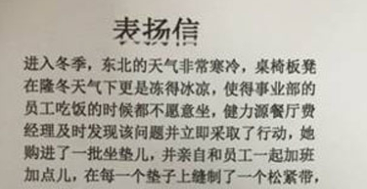 近日,公司收到沈陽(yáng)海爾園區(qū)行政和工會(huì)聯(lián)合發(fā)來(lái)的表?yè)P(yáng)信,對(duì)我公司沈陽(yáng)海爾餐廳提出表?yè)P(yáng)。為什么要表?yè)P(yáng)呢?原因在于一件看似非常普通的小事,然而正是這件小事,卻真正溫暖到了顧客的心里。