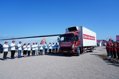 上午8點(diǎn)前,在農(nóng)場(chǎng)、物流和職能三方人員的共同努力下,所有蔬菜裝車(chē)完畢,靜待出發(fā)。為了迎接這一刻,農(nóng)場(chǎng)專(zhuān)門(mén)舉辦了發(fā)車(chē)儀式,現(xiàn)場(chǎng)彩旗飄飄,工作人員分列兩隊(duì),手持橫幅,共同期待發(fā)車(chē)時(shí)刻的到來(lái)。隨著力源生態(tài)農(nóng)場(chǎng)徐濤總經(jīng)理的一聲“發(fā)車(chē)”令下,在大家熱烈的掌聲中,載重6噸的冷藏車(chē)輛緩緩啟動(dòng),開(kāi)往北京。