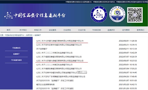 “中國食品安全信息追溯平臺”公示