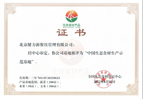 “中國(guó)生態(tài)食材生產(chǎn)示范基地”證書