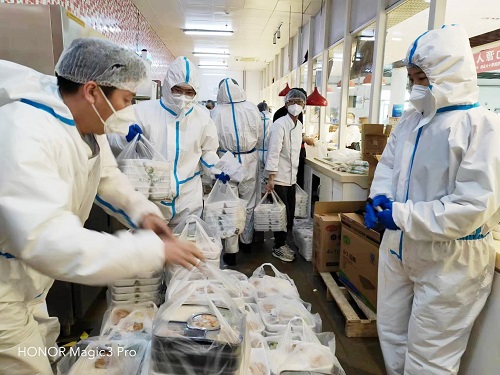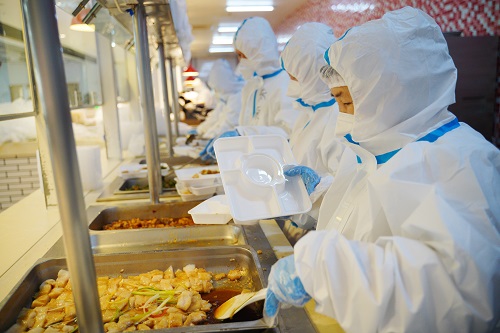 面對激增的就餐人數(shù)、成倍增加的工作量,餐廳人員捉襟見肘,嚴(yán)重短缺。關(guān)鍵時刻,北京公司黨支部書記、集團體系安全總監(jiān)謝水甫親自帶領(lǐng)職能部門15人團隊支援項目,并組建黨員先鋒隊,逆行而上、沖鋒在前,凸顯出黨支部的先鋒堡壘作用,展現(xiàn)出職能部門與營運部門站在一起的決心。同時,大區(qū)和區(qū)域盡最大努力協(xié)調(diào)其他項目人員給予幫扶支持,并為員工配備防護服和生活用品。大家的目標(biāo)只有一個——全力保障奔馳項目正常運轉(zhuǎn),讓公司放心,讓客戶放心!