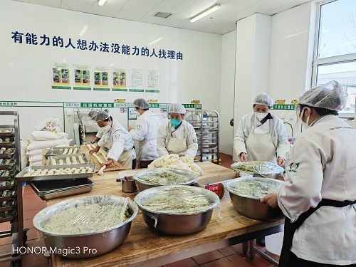 11月份,北京疫情形勢急轉(zhuǎn)直下。然而,作為北京市重點企業(yè),北京奔馳必須加足馬力,趕進度、沖目標(biāo)。為了保障員工身體健康,確保足夠的生產(chǎn)力量,廠區(qū)實施封閉管理,所有員工吃住在車間。此時此刻,餐飲保障至關(guān)重要。11月23日,北京奔馳健力源餐廳響應(yīng)客戶要求,區(qū)域總高連修帶領(lǐng)100多名員工果斷進入餐廳,開始封閉保障。