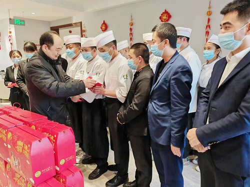 1月21日,又是一年除夕至。在這舉國(guó)同慶、闔家團(tuán)圓的美好時(shí)刻,整個(gè)集團(tuán)依然有275家餐廳保持開(kāi)業(yè)狀態(tài),有2800多名員工堅(jiān)守崗位,全力為廣大客戶做好年夜飯保障。除夕當(dāng)天,薦世新董事長(zhǎng)和集團(tuán)高層領(lǐng)導(dǎo)專程前往部分重點(diǎn)餐廳看望并慰問(wèn)在崗的同事們。