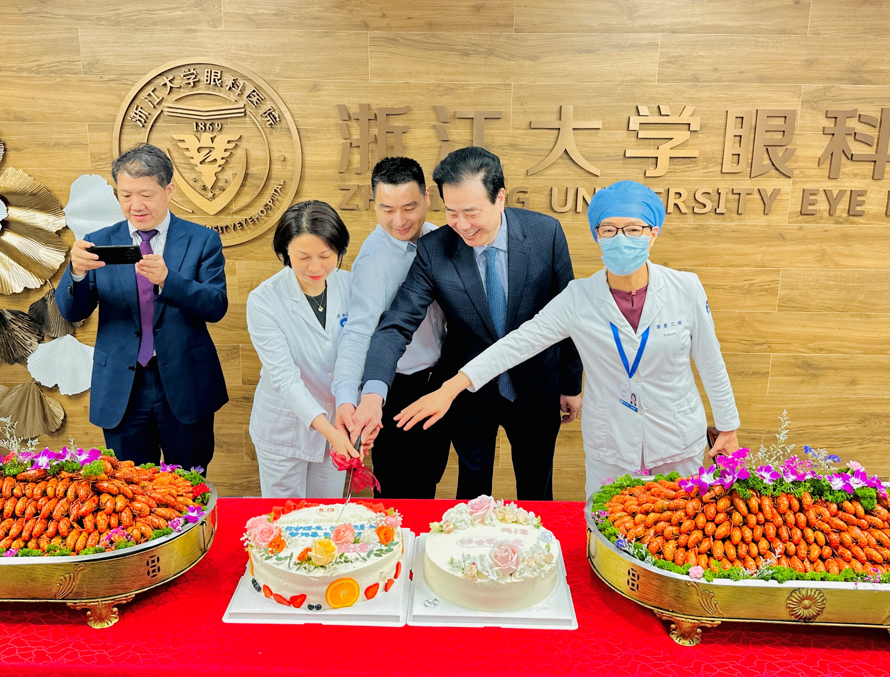浙大眼科醫(yī)院領(lǐng)導(dǎo)一同切開蛋糕