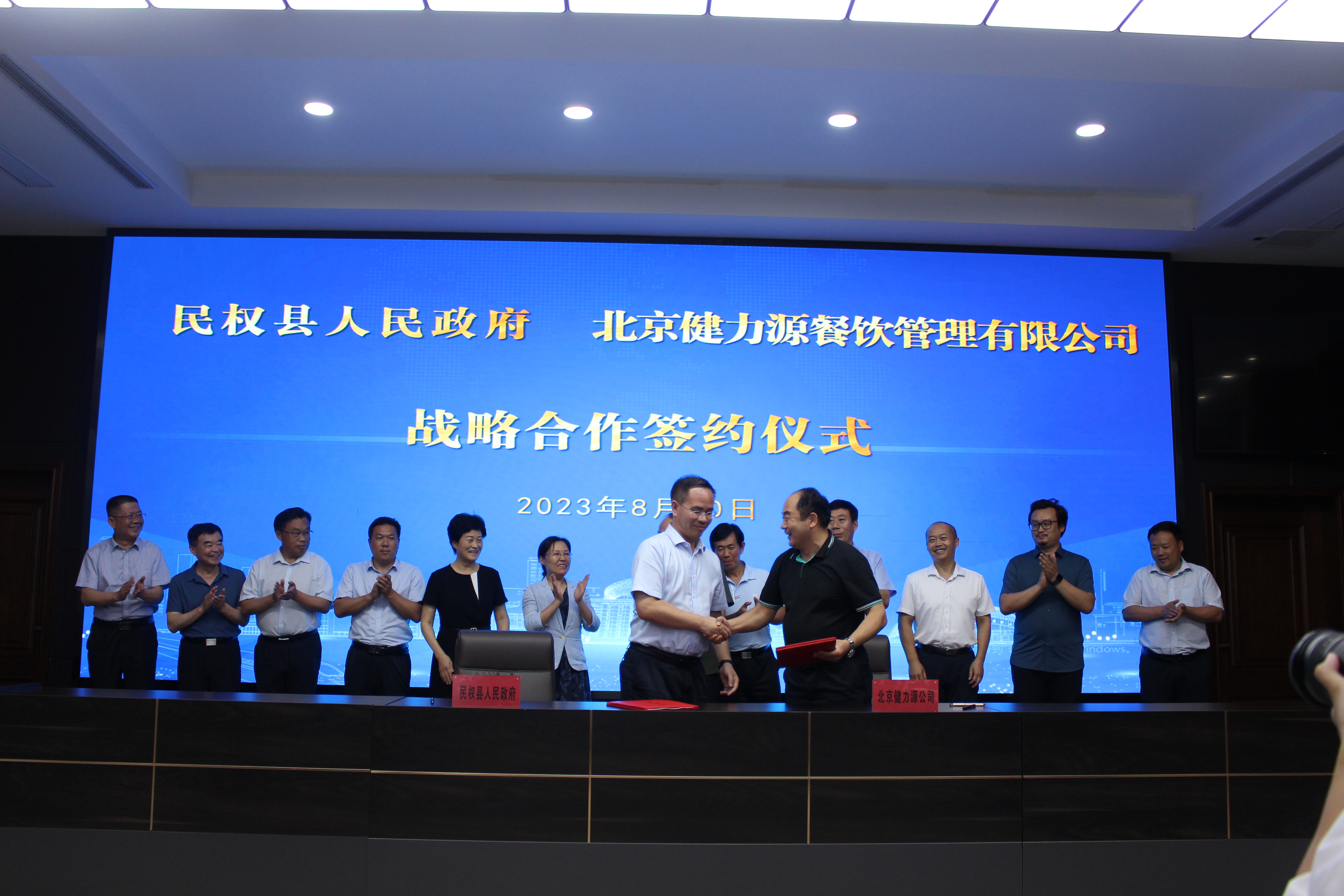 雙方在縣委會議室進行了座談,彼此做了進一步溝通交流,表達了合作意愿。薦董表示,作為中國團餐領軍企業(yè),健力源一直秉承“做良心企業(yè),賣放心食品”的核心價值觀,努力搭建從源頭到餐桌的全產(chǎn)業(yè)鏈。我們希望與民權縣合作,為當?shù)貙W校和企事業(yè)單位提供食材全品類供應和餐廳管理,特別是解決學生餐食品安全難題,整合規(guī)范學生餐市場,進而倒逼供應鏈,促進農(nóng)產(chǎn)品深加工,實現(xiàn)訂單農(nóng)業(yè),構建一二三產(chǎn)融合發(fā)展模式,為鄉(xiāng)村振興發(fā)展助力。隨后,雙方一同簽訂戰(zhàn)略合作協(xié)議,開啟了全新的合作篇章。
