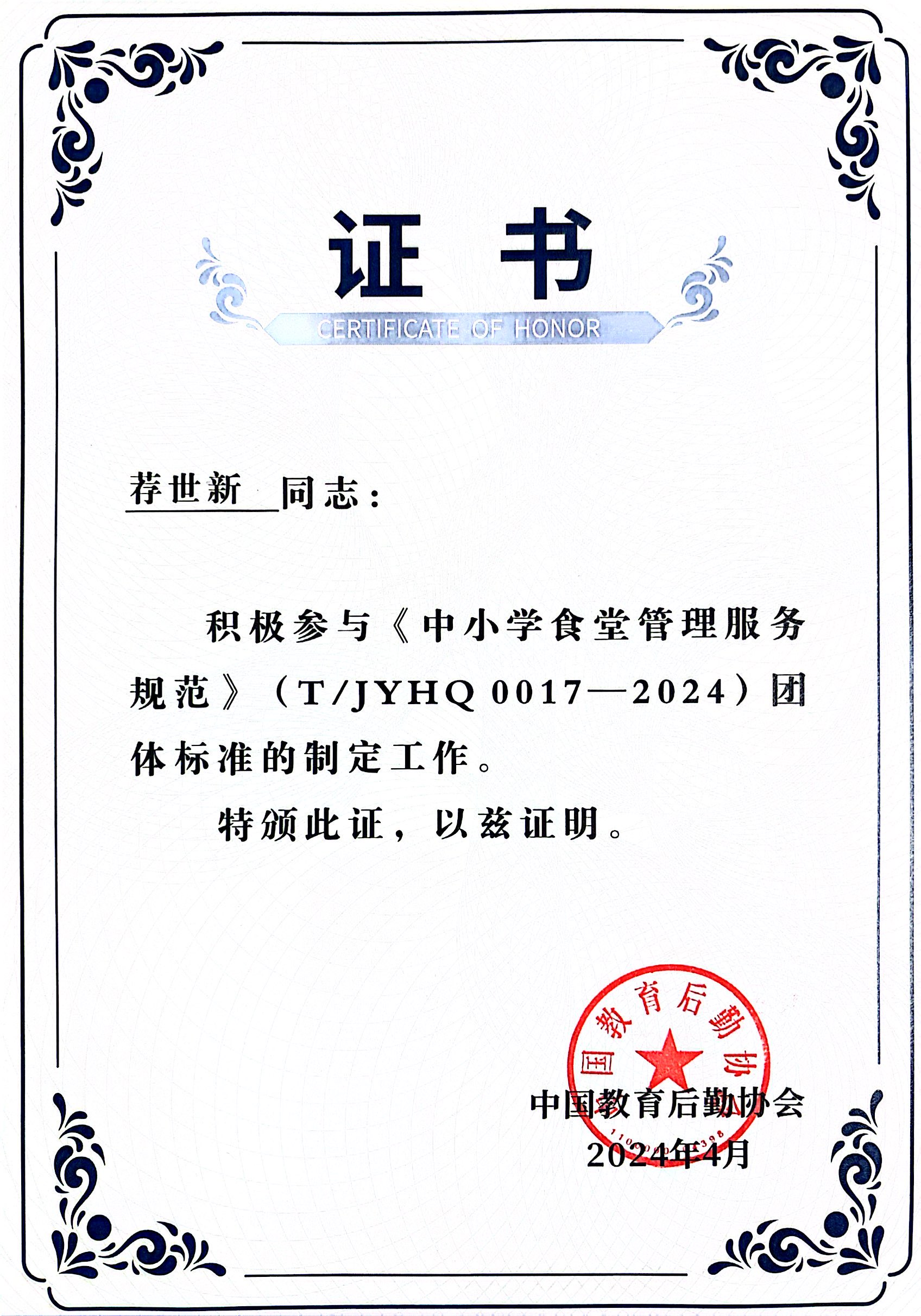 5月1日,由北京健力源餐飲管理有限公司參與起草的《中小學(xué)食堂管理服務(wù)規(guī)范》(T/JYHQ 0017-2024)團(tuán)體標(biāo)準(zhǔn)正式實(shí)施。