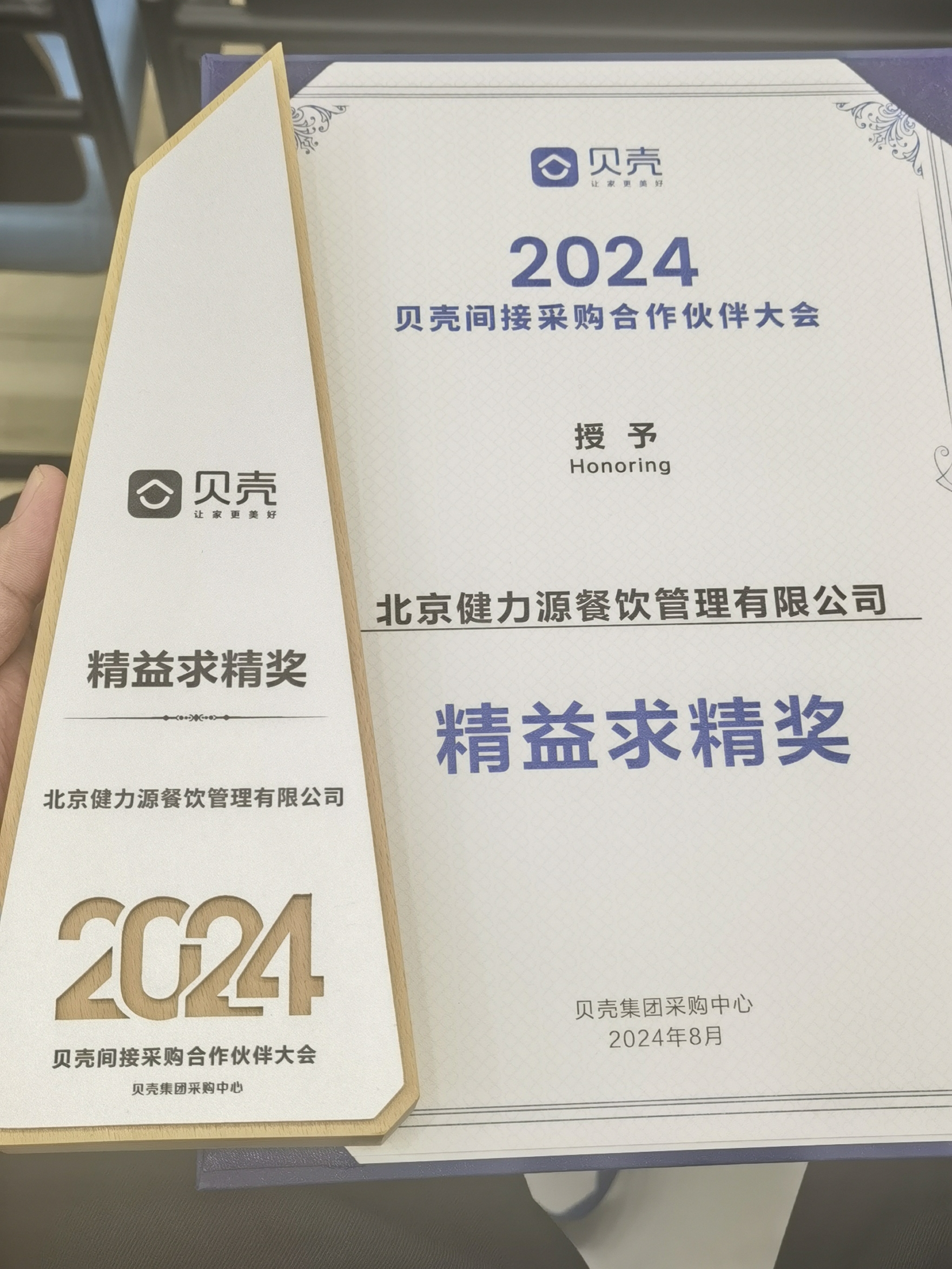 8月22日,由貝殼集團(tuán)采購中心組織舉辦的“攜手共進(jìn)·生態(tài)共贏——2024貝殼間接采購合作伙伴大會”在貝殼集團(tuán)總部召開,北京健力源餐飲管理有限公司被授予“精益求精獎(jiǎng)”。這一殊榮不僅是貝殼集團(tuán)對健力源餐廳服務(wù)團(tuán)隊(duì)的褒揚(yáng),同樣也是對健力源品牌的高度認(rèn)可。