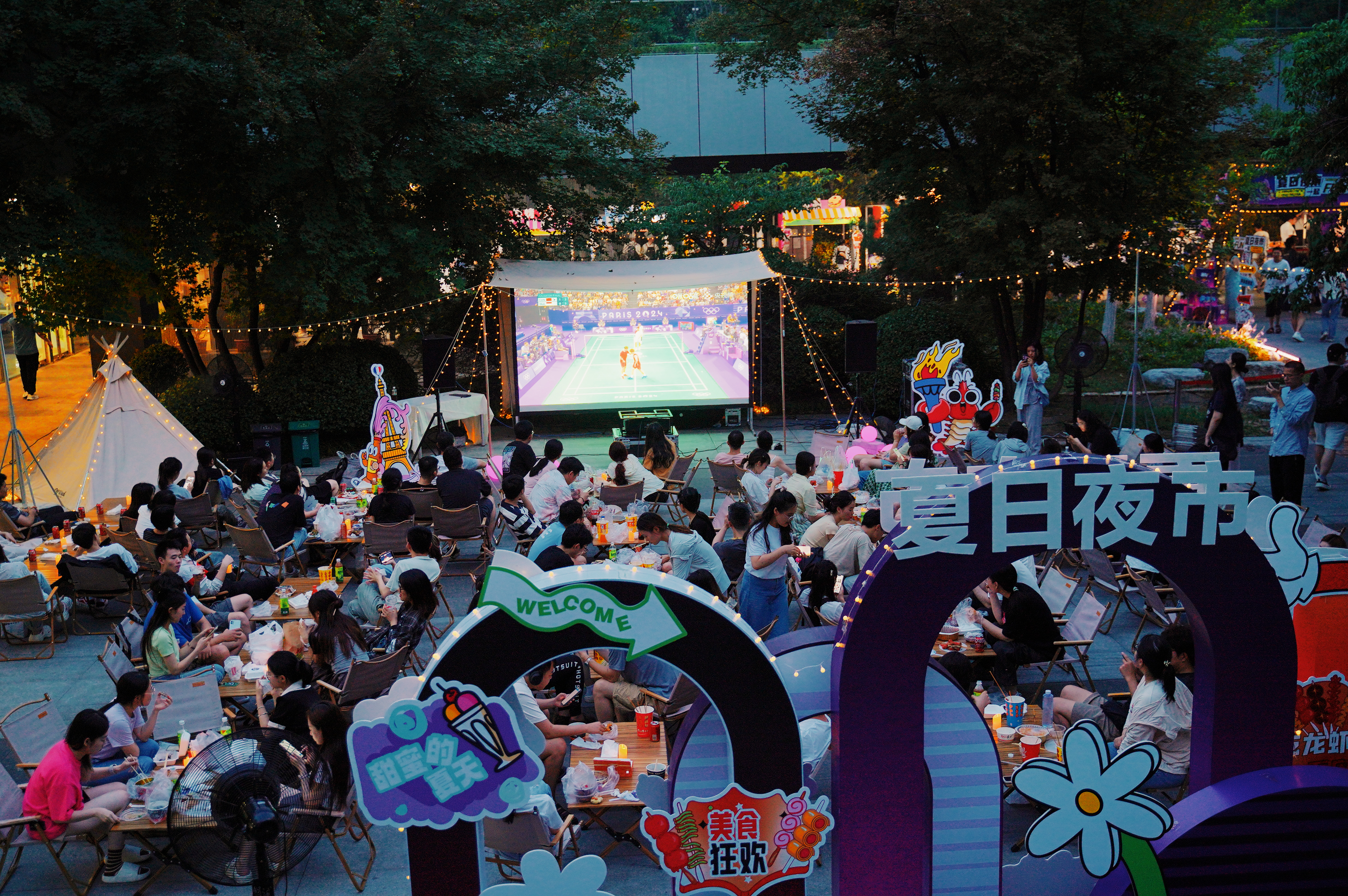 不僅如此,本次夜市美食節(jié)正值巴黎奧運(yùn)會期間,除了給廣大度廠顧客帶去各種美食外,也旨在讓大家“一起FUN”“為奧運(yùn)喝彩、為中國加油”。現(xiàn)場一側(cè)為美食售賣區(qū),一道道美食熱辣滾燙,充滿了煙火氣息;另一側(cè)則是美食享用區(qū)和奧運(yùn)觀賽區(qū),現(xiàn)場懸掛的幕布投影正在播放當(dāng)日中國隊的比賽,百度同學(xué)們一邊大快朵頤,一邊為中國隊齊聲喝彩,現(xiàn)場氛圍異常火爆。