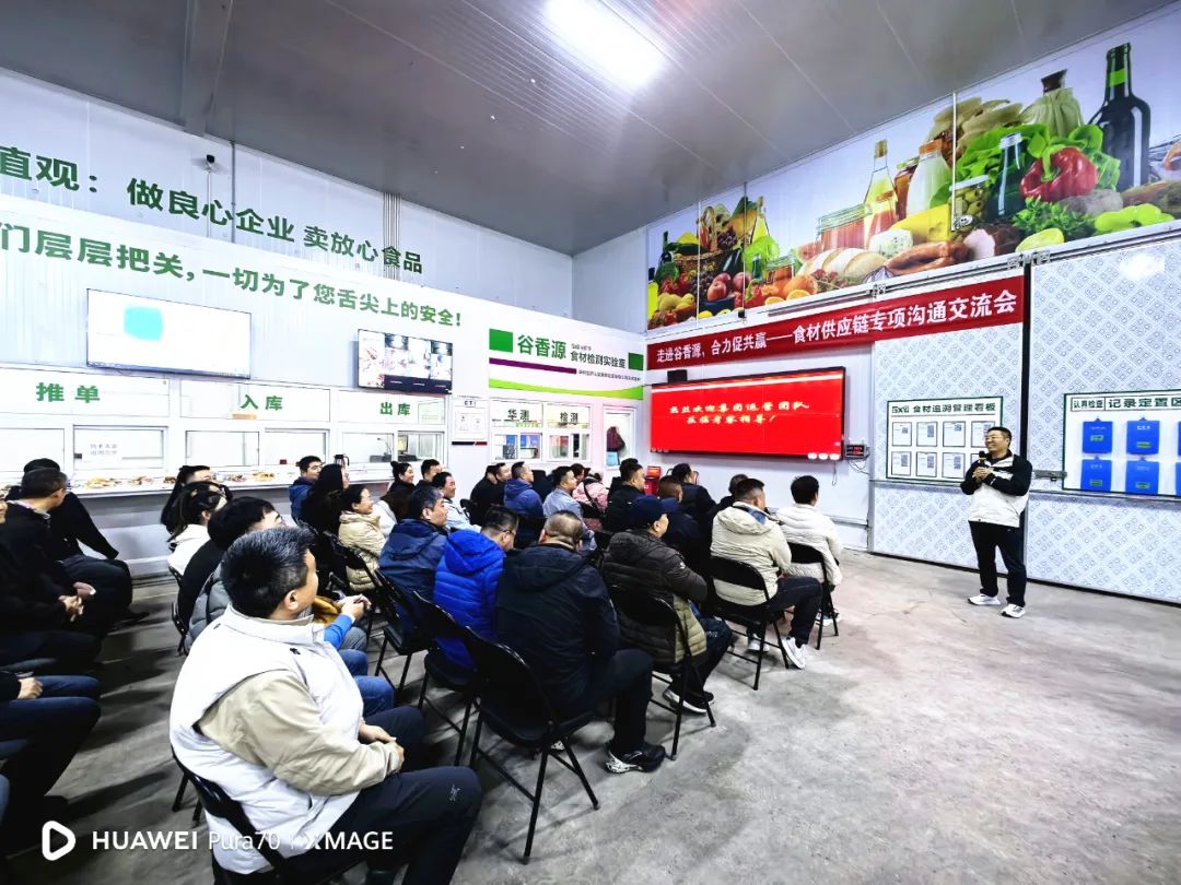 帶著意猶未盡的黨史學(xué)習(xí)激情,大家一同走進(jìn)谷香源房產(chǎn)全品配送中心。谷香源總經(jīng)理柯建卓帶領(lǐng)大家參觀了配送中心的常溫庫、保鮮庫、低溫庫、分揀區(qū)等區(qū)域,北京大區(qū)采購部經(jīng)理?xiàng)钇G朝同步介紹了各食材品牌的采購渠道及產(chǎn)品優(yōu)勢(shì)?,F(xiàn)場(chǎng)還進(jìn)行了座談交流,大家一起了解了谷香源雙中心保供、全程冷鏈車保障、源頭采購、價(jià)格體系管理、全程信息化管理、食安管控、自有供應(yīng)鏈基地七大優(yōu)勢(shì)。
