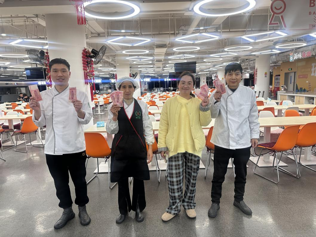 山東大區(qū)也不乏典型代表。在辭舊迎新之際,濟南一區(qū)兩個新項目迎來了開業(yè),除夕當(dāng)天,區(qū)域經(jīng)理張亞莉、片區(qū)經(jīng)理宗德花和馬燕、餐廳經(jīng)理王士奇和王紅霞與員工們一同堅守崗位,做好服務(wù)保障,確保兩個新項目的順利運轉(zhuǎn)。濟南一區(qū)片區(qū)經(jīng)理安翠霞、某交通單位餐廳經(jīng)理林福剛也連續(xù)多年除夕在崗。鄭州區(qū)域某央企餐廳員工周改會、楊翠娟、馮三云、胡振忠均連續(xù)五年以上在餐廳過年,某醫(yī)院項目前廳主管華令霞、送餐員董連華自餐廳開業(yè)以來一直都是在崗位上度過除夕。