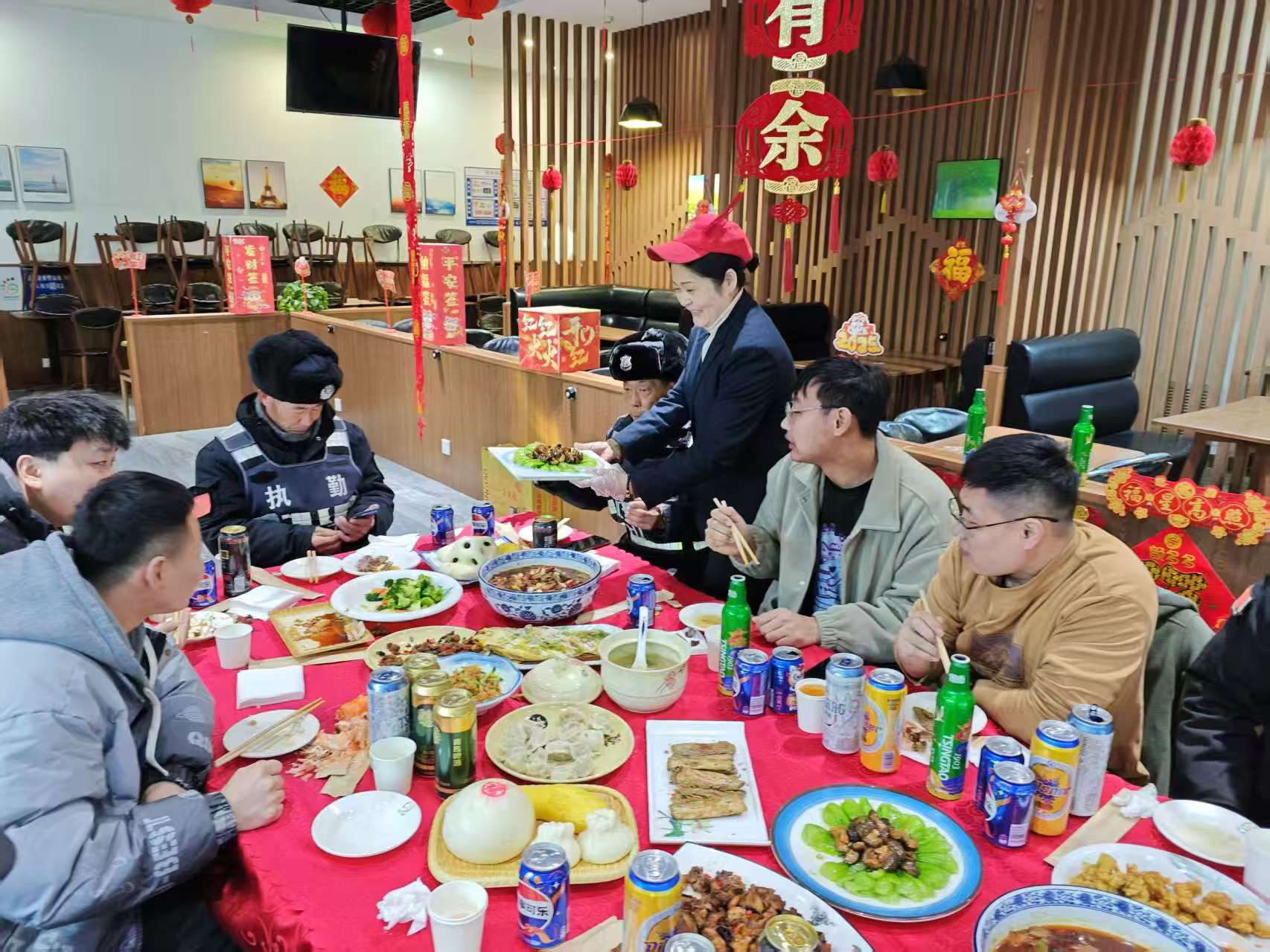 集團始終銘記每一位員工的付出,始終將員工的冷暖放在心上。在這個團圓的日子里,各大區(qū)領(lǐng)導(dǎo)也前往餐廳現(xiàn)場,為堅守崗位的員工們送去節(jié)日慰問和關(guān)懷。