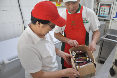 送清涼期間,集團(tuán)工會主席顧勤、副主席戰(zhàn)桂華,北京大區(qū)工會主席謝水甫、沈陽大區(qū)營運(yùn)總經(jīng)理張克明,上海大區(qū)營運(yùn)總經(jīng)理張淑卿,以及各區(qū)域經(jīng)理,基層工會負(fù)責(zé)人,紛紛前往餐廳看望員工,與員工交流,表達(dá)公司、工會的關(guān)懷慰問,以及公司的感謝,同時親自將毛巾、洗衣液、沐浴露、洗手液等物品發(fā)給員工。領(lǐng)導(dǎo)們查看了餐廳平日的防暑降溫工作,絕大部分餐廳的防暑降溫工作做得很到位,很多餐廳為員工準(zhǔn)備了水、西瓜、冰糕、降溫茶等,方便員工取用。