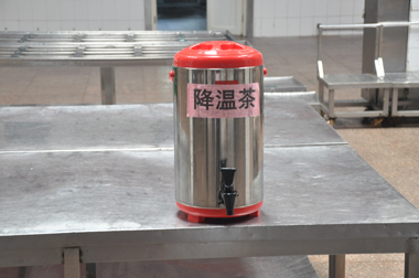 集團(tuán)工會顧勤主席查看餐廳給員工準(zhǔn)備的防暑降溫物品