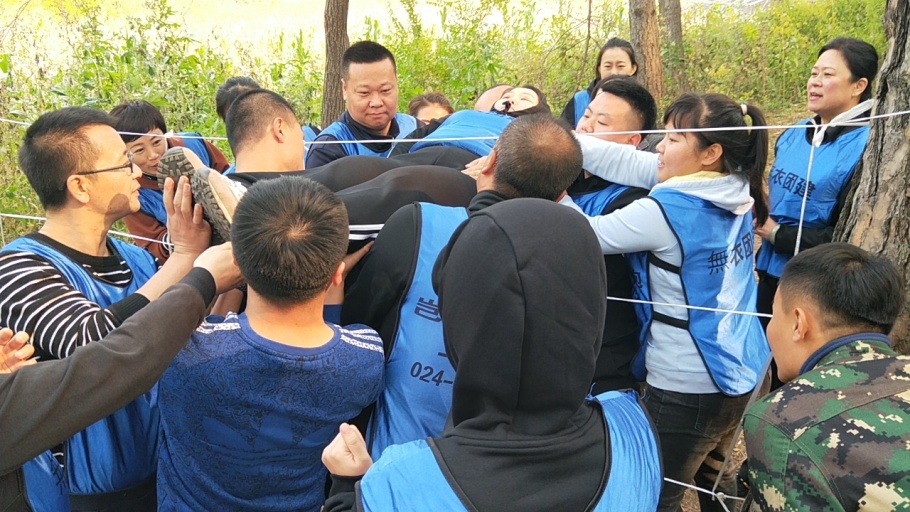 在結(jié)束了第一天的授課后,第二天的拓展訓(xùn)練伴隨著冉冉升起的朝陽開始了。拓展訓(xùn)練分隊(duì)組織,每一個(gè)隊(duì)都起了富有寓意的隊(duì)名,設(shè)計(jì)了風(fēng)格迥異的隊(duì)徽,并選出隊(duì)長和副隊(duì)長。伴隨著教官的口令和哨聲,拓展訓(xùn)練正式拉開帷幕,從急速60S到挑戰(zhàn)150,從穿越電網(wǎng)到高空斷橋,直到最后一個(gè)項(xiàng)目“畢業(yè)墻”,每一個(gè)項(xiàng)目都極富挑戰(zhàn)性,每一個(gè)項(xiàng)目都充分考驗(yàn)了各支隊(duì)伍的團(tuán)結(jié)協(xié)作能力,看似不可能的任務(wù)在大家的齊心協(xié)力下迎刃而解、圓滿完成。在這個(gè)過程中,留下了很多感人的瞬間。我們看到了同事們手拉手、肩并肩,奮力前行的身影;我們聽到了一陣陣此起彼伏,熱情高亢的掌聲和加油聲;我們感受到了同事之間無比的信任和友誼,感受到了團(tuán)隊(duì)的凝聚力和戰(zhàn)斗力。團(tuán)餐公司