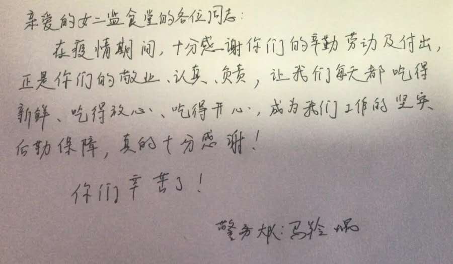 遼寧省第二女子監(jiān)獄員工手寫(xiě)表?yè)P(yáng)信