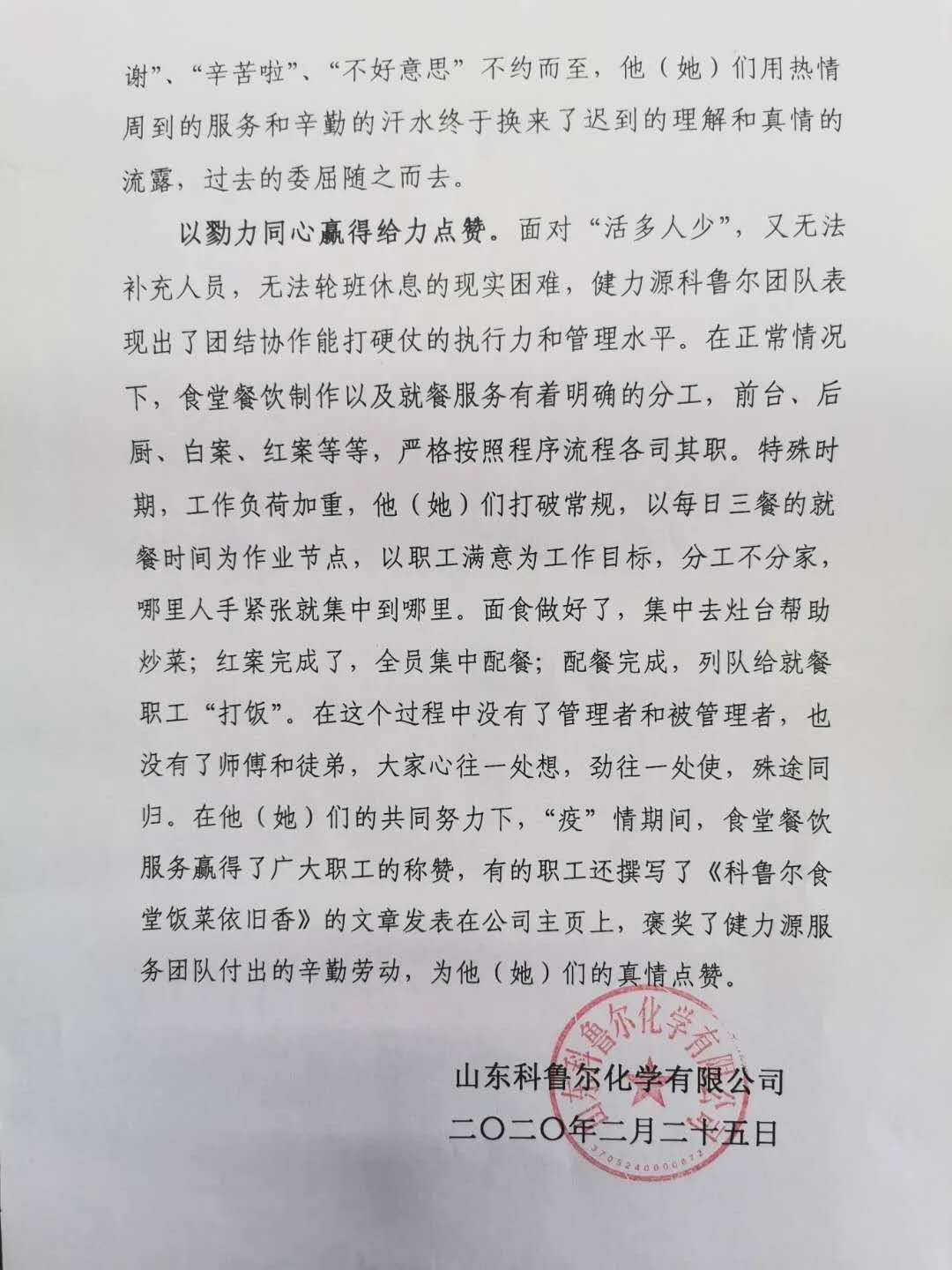 濟(jì)南市女子監(jiān)獄餐廳獲得客戶表?yè)P(yáng)信