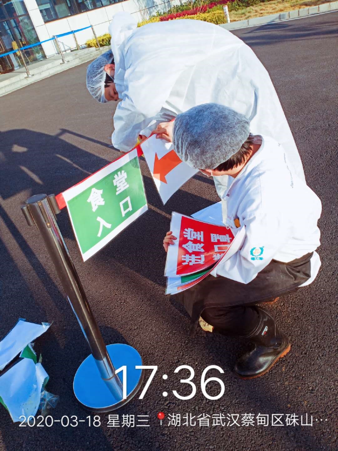 伴隨著疫情的緩解,三月中下旬,武漢企業(yè)陸續(xù)開始復工復產。然而復工復產并不是一件容易的事情,人員、物資的短缺,現(xiàn)場的防護消毒,就餐模式的調整改變,面臨的很多問題需要解決。接到客戶復工通知后,武漢區(qū)域果斷行動,安排員工提前準備返崗手續(xù)。管理人員和骨干員工發(fā)揮帶頭作用,首先返回武漢進行隔離。在返崗的過程中,由于缺乏公共交通,而且要經(jīng)過層層檢測關卡,很多員工選擇自駕、拼車、朋友捎帶等方式趕往武漢,并主動帶上被褥、臉盆等物品,以應對隨時可能發(fā)生變故的入漢路途。集團采購中心積極聯(lián)系供貨商,全力保證武漢各餐廳復工物資供應。復工前,餐廳工作人員密切配合客戶對餐廳進行了全面消毒,對所有進出餐廳人員進行測溫,對所有生產工用具進行消毒,并在餐廳內張貼各種警示標志,為餐桌安裝隔斷等等,真正做到了不折不扣落實公司防疫要求,為客戶復工復產做好準備。食堂外包
