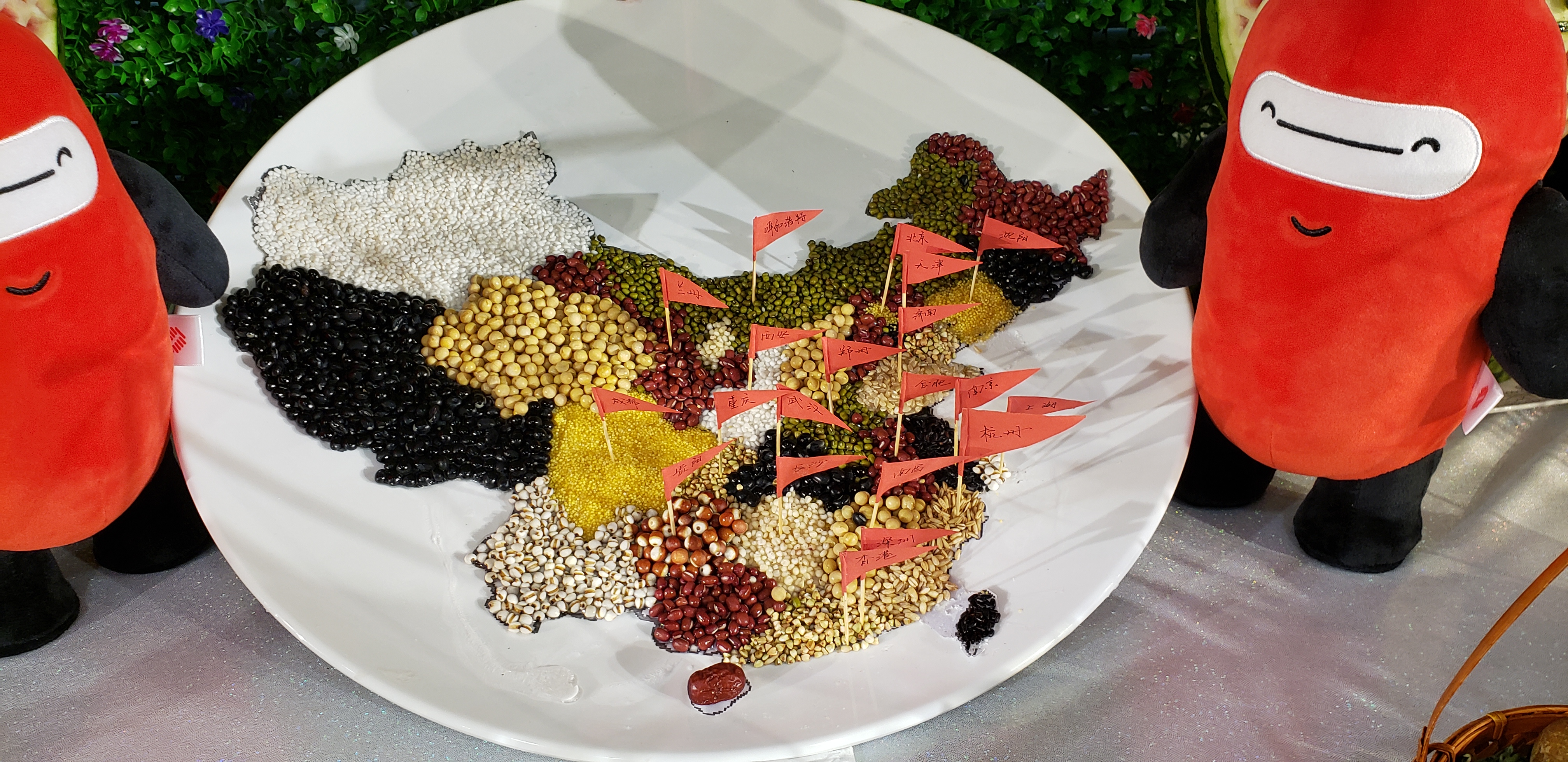 在此次美食節(jié)活動中,餐廳還特意制作了一份專屬于浙商銀行的展品——浙商銀行的全國分布版圖!五谷雜糧拼成的中國地圖插上了特別的紅色小旗子,用來標注浙商銀行的分布省份飲食元素與甲方版圖的完美結(jié)合為本次美食節(jié)起到了畫龍點睛的作用。行領(lǐng)導(dǎo)對此給予高度贊賞,并紛紛拍照留念。