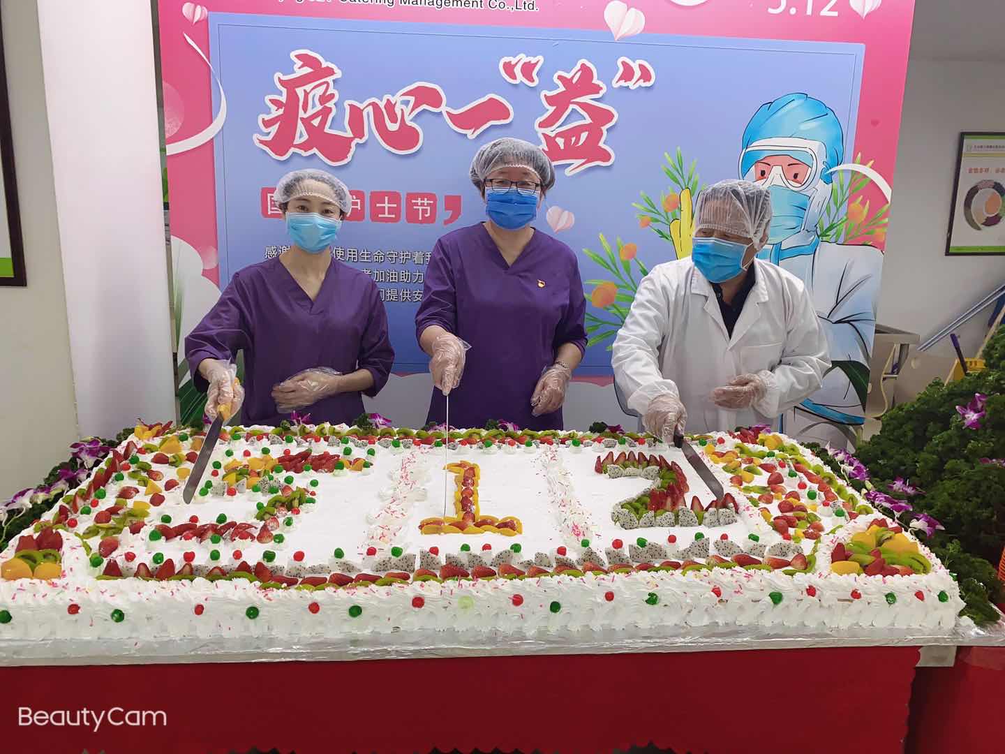 活動(dòng)當(dāng)天,許多餐廳紛紛推出了香甜誘人的大蛋糕。長長的蛋糕點(diǎn)綴上各種水果,配上精美的雕花,成了餐廳一道美麗的風(fēng)景,非常吸睛。午餐時(shí)分,領(lǐng)導(dǎo)們一起切開蛋糕與護(hù)士們分享。一塊塊蛋糕代表了大家的一片感恩之情,甜在她們口中,也甜到她們心里。
