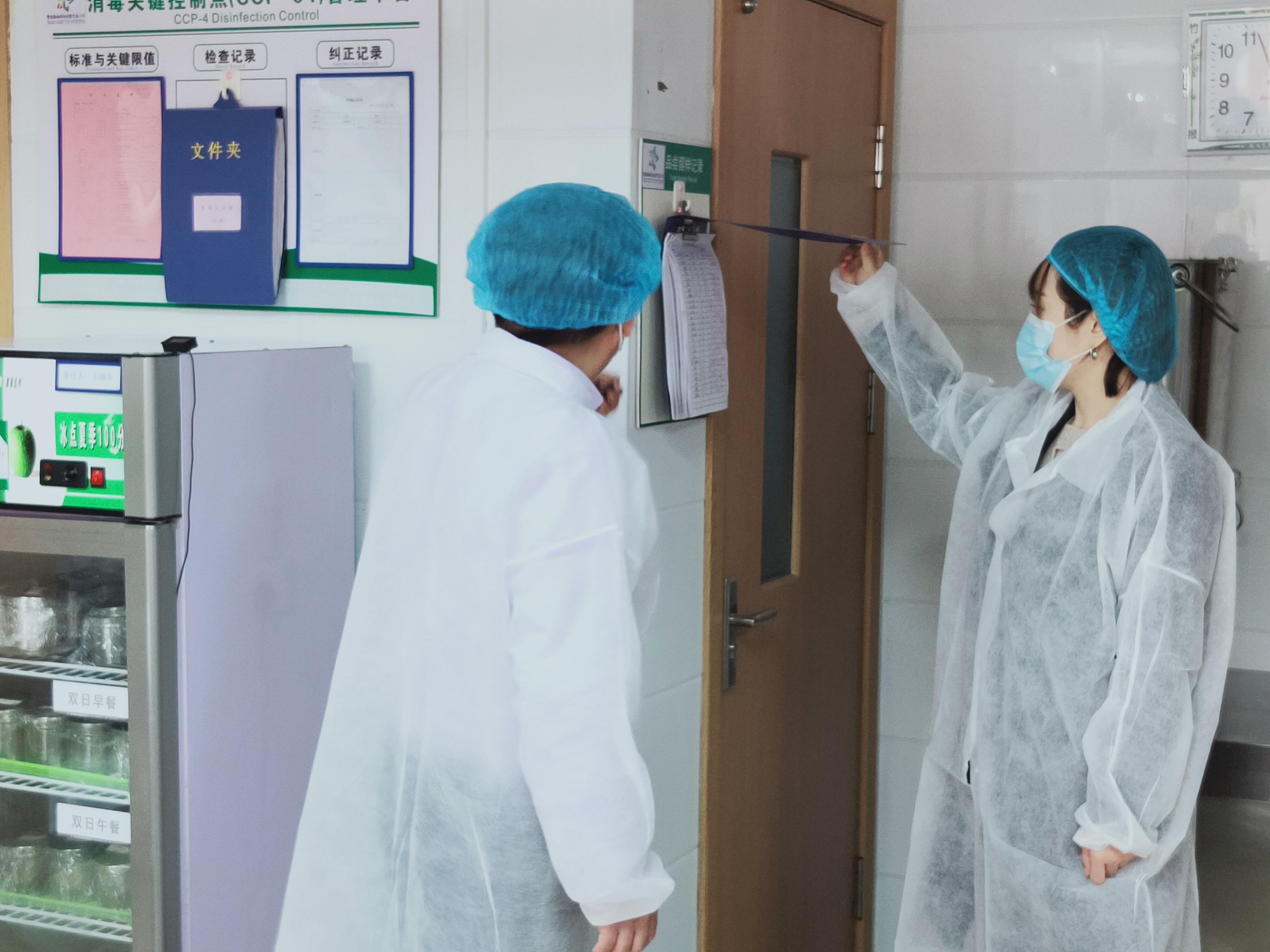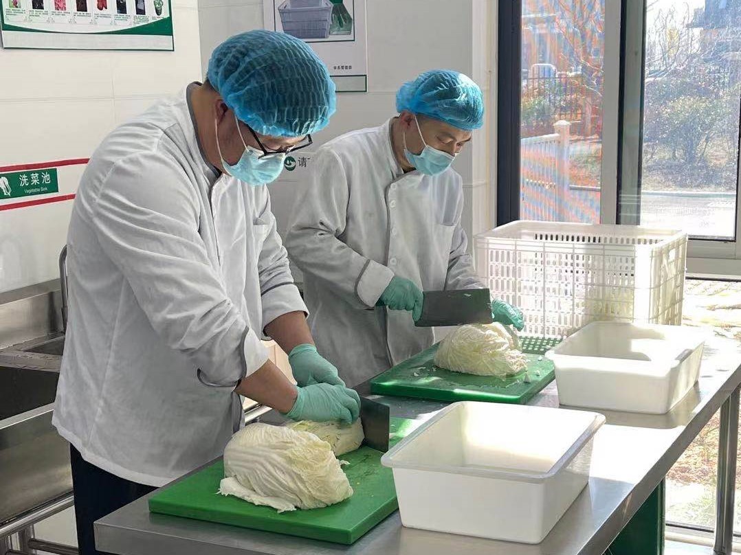 山東大區(qū)體系管理部經(jīng)理王格帶領(lǐng)記者參觀餐廳后廚,認(rèn)真講解每一道工序,并特別針對餐廳的食材質(zhì)量把控、加工用具分類、菜譜營養(yǎng)分析、菜品中心溫度檢測、食品留樣、餐具消毒和檢測等關(guān)鍵控制點(diǎn)進(jìn)行介紹。