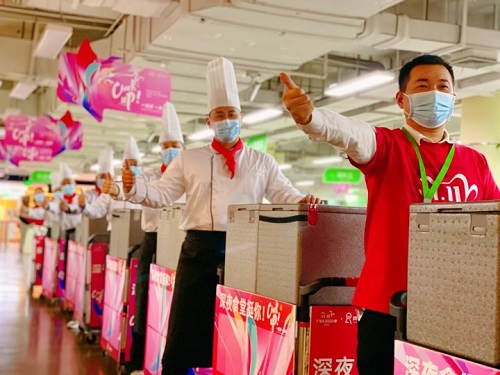 每年的“雙11”餐飲保障都是一場(chǎng)戰(zhàn)役。從菜單的設(shè)計(jì),到現(xiàn)場(chǎng)的布置,從人員的組織,到流程的銜接,再加上超大強(qiáng)度、超長(zhǎng)時(shí)間的服務(wù),對(duì)現(xiàn)場(chǎng)工作人員而言,是一次艱巨的挑戰(zhàn)。在此次“雙11”服務(wù)保障期間,各餐廳再次凝聚起力量,每個(gè)餐廳員工都打起十二分精神投入到服務(wù)保障中,區(qū)域內(nèi)積極給予協(xié)助。上海大區(qū)張淑卿總經(jīng)理也親自前往杭州部署工作。此外,餐廳還學(xué)會(huì)了借用外力,比如阿里濱江園區(qū)餐廳通過“點(diǎn)都德”采購(gòu)美味茶點(diǎn),并由“餓了么”騎手配送到餐廳。正因?yàn)橛辛烁鞣搅α康膱F(tuán)結(jié)凝聚,才確保了此次“雙11”保障的順利完成。